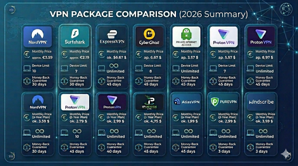 VPN Package Comparison (2026 Summary)